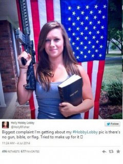 Recently a far-right wing young lady, who loves to provoke the left on Twitter, decided to make a point of her stance on Guns, Flags, and God: